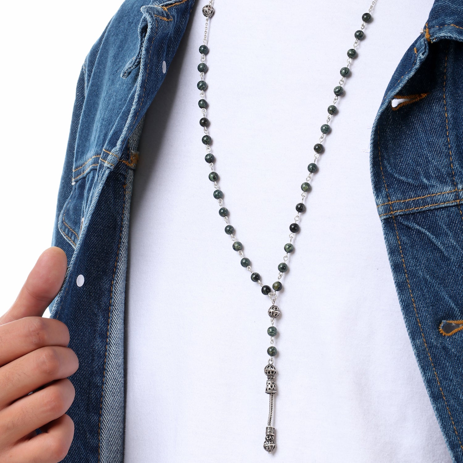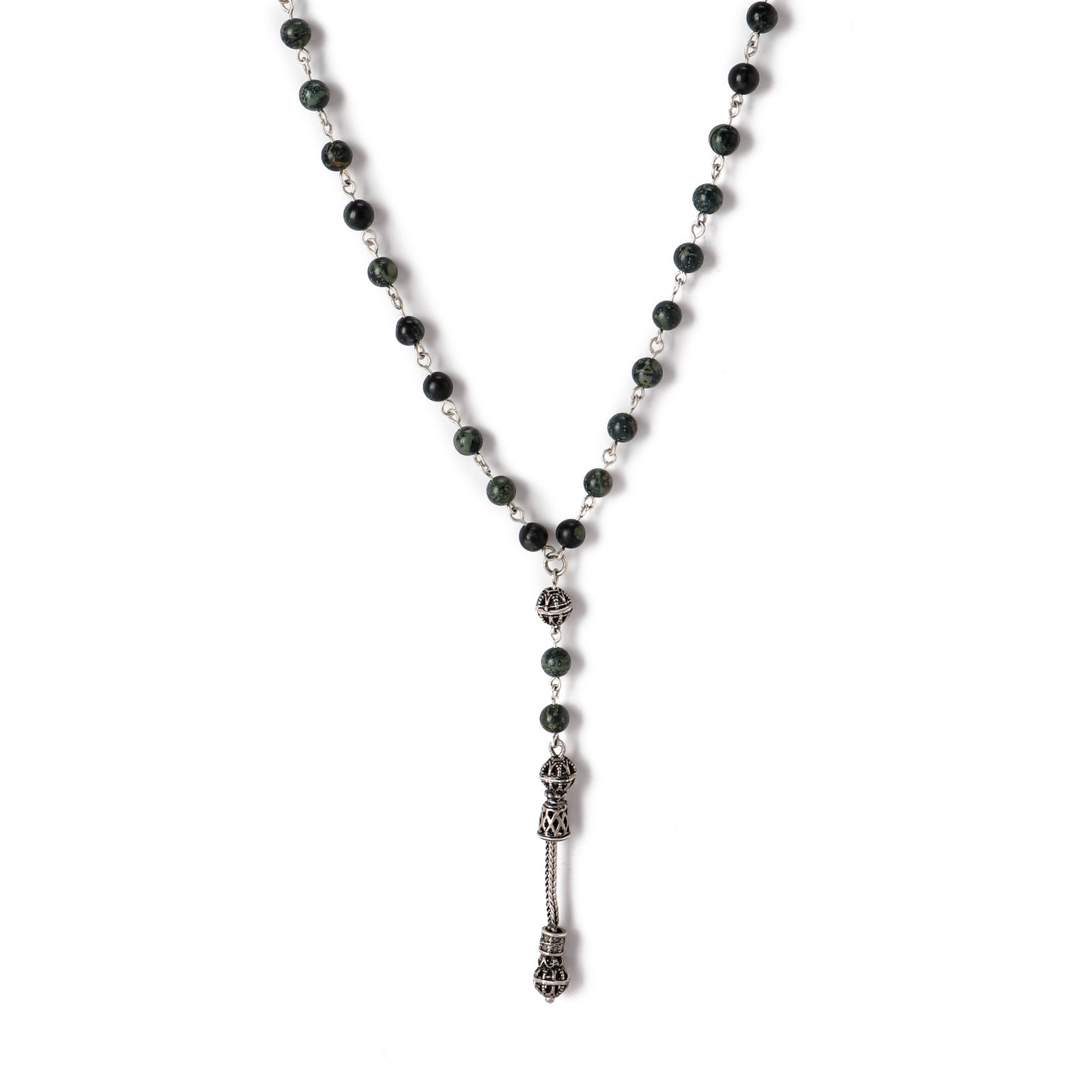Complete your outfit with our African Jasper Necklace V (6mm). Handcrafted in The Egyption by professional artisans with the best Nature has to offer and with 925 Sterling Silver.What if your Necklace became a piece of art that adorns Your neck ?We offer you this wonderful Necklace that you can wear all the time, accompany you in your day, inspire you and remind you of what is important, and add an aesthetic touch to your daily look.This piece of art is carved from natural African Jasper stone, carefully arranged, and assembled with a very strong thread that we guarantee for life.Our artists designed this Necklace to be easily worn.
