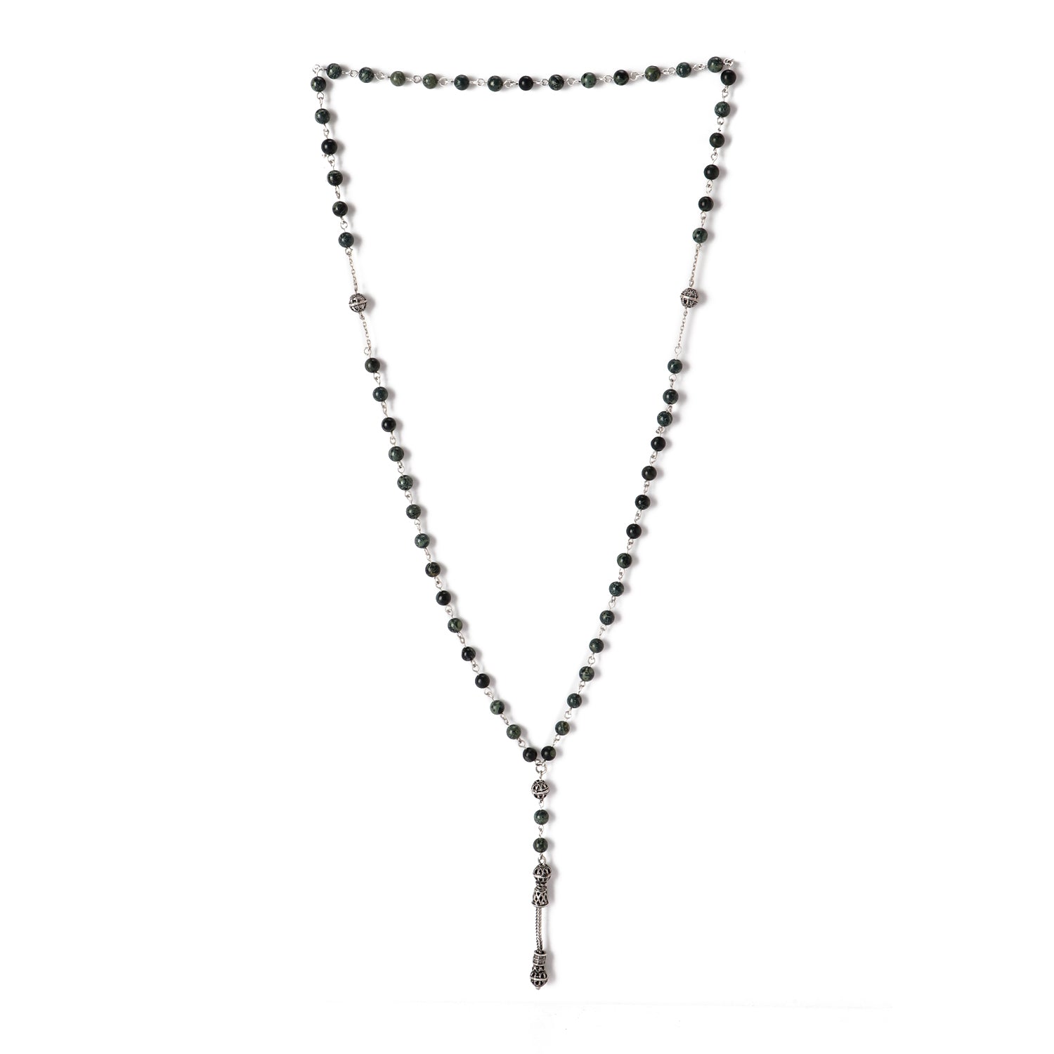 Complete your outfit with our African Jasper Necklace V (6mm). Handcrafted in The Egyption by professional artisans with the best Nature has to offer and with 925 Sterling Silver.What if your Necklace became a piece of art that adorns Your neck ?We offer you this wonderful Necklace that you can wear all the time, accompany you in your day, inspire you and remind you of what is important, and add an aesthetic touch to your daily look.This piece of art is carved from natural African Jasper stone, carefully arranged, and assembled with a very strong thread that we guarantee for life.Our artists designed this Necklace to be easily worn.