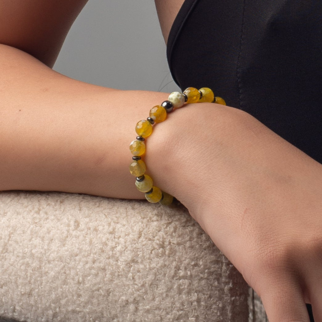 Yellow Agate - Hematite Bracelet - (8 mm)