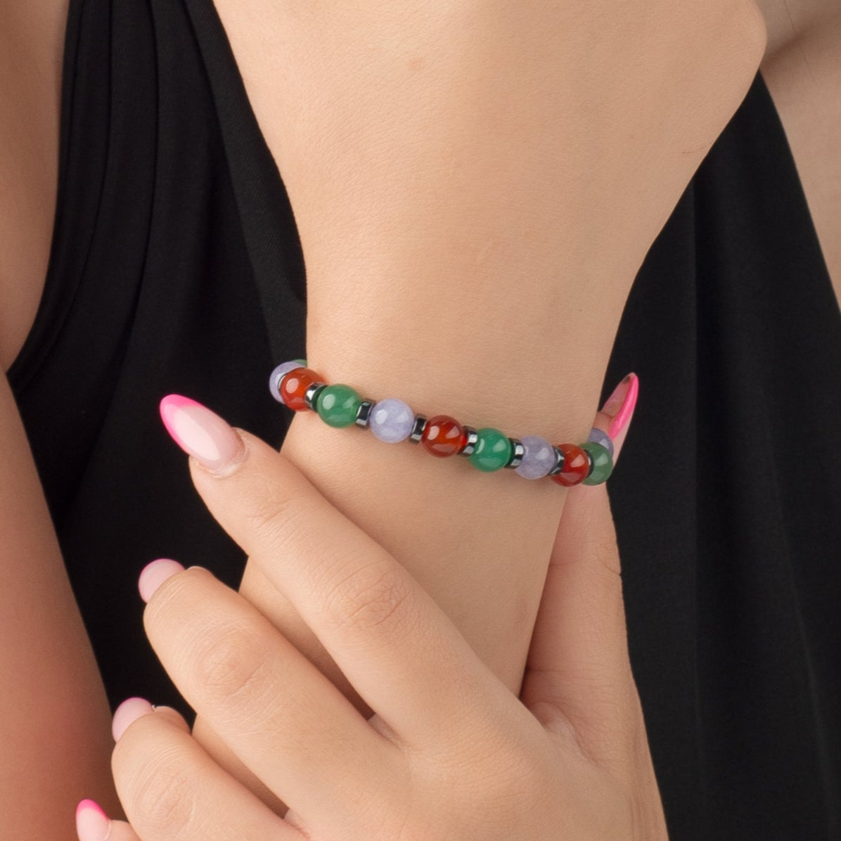 We carved it for you with pure love, designed from an Agate and Carnelian and Aventurine stone, and precious hematite stones, so that it comes to you as a precious gift.