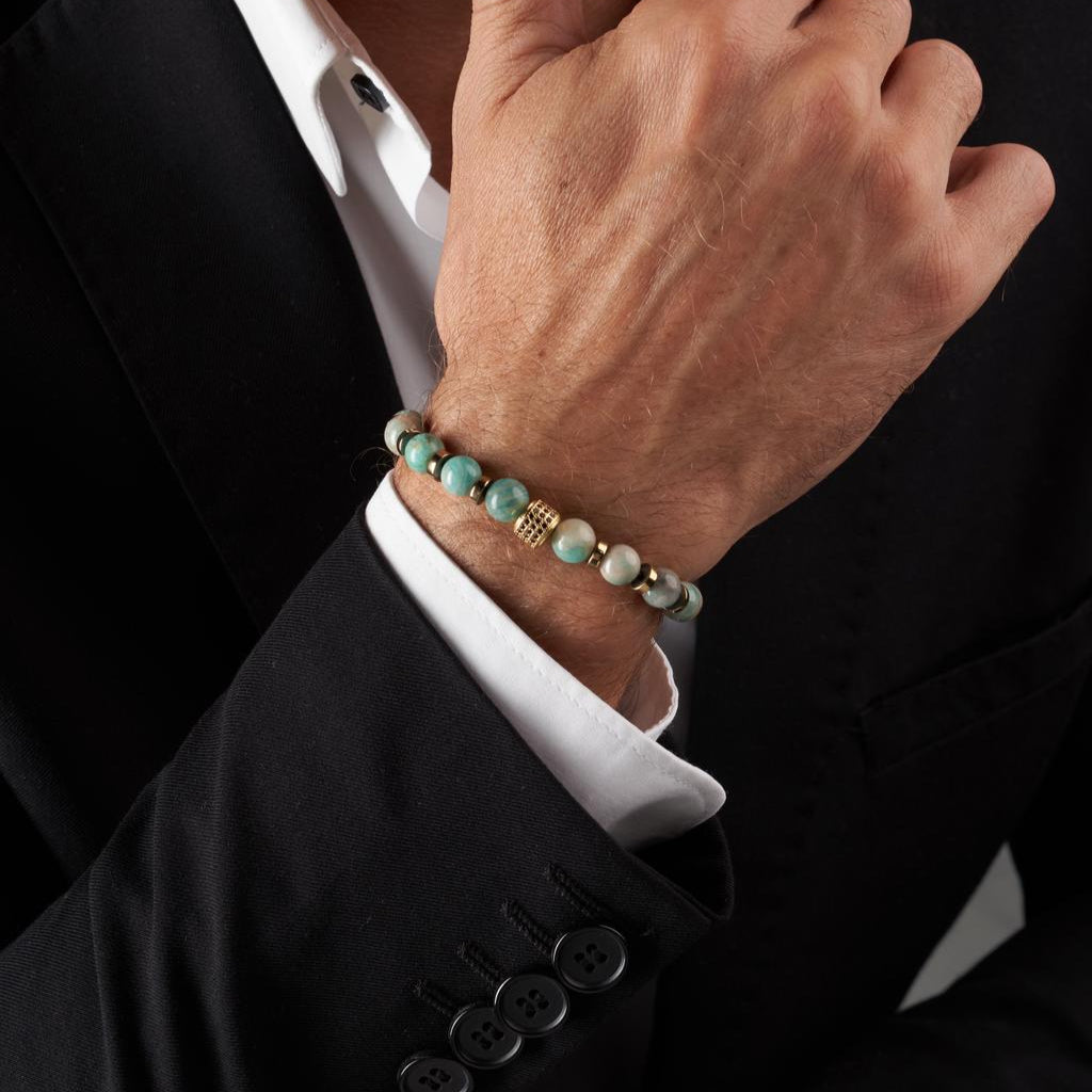This collection is distinguished by its elegant circular shape, which gives it a charming effect. We carved it for you with pure love, designed from a Amazonite stone, inlaid with zircon stones and precious hematite stones, so that it comes to you as a precious gift.