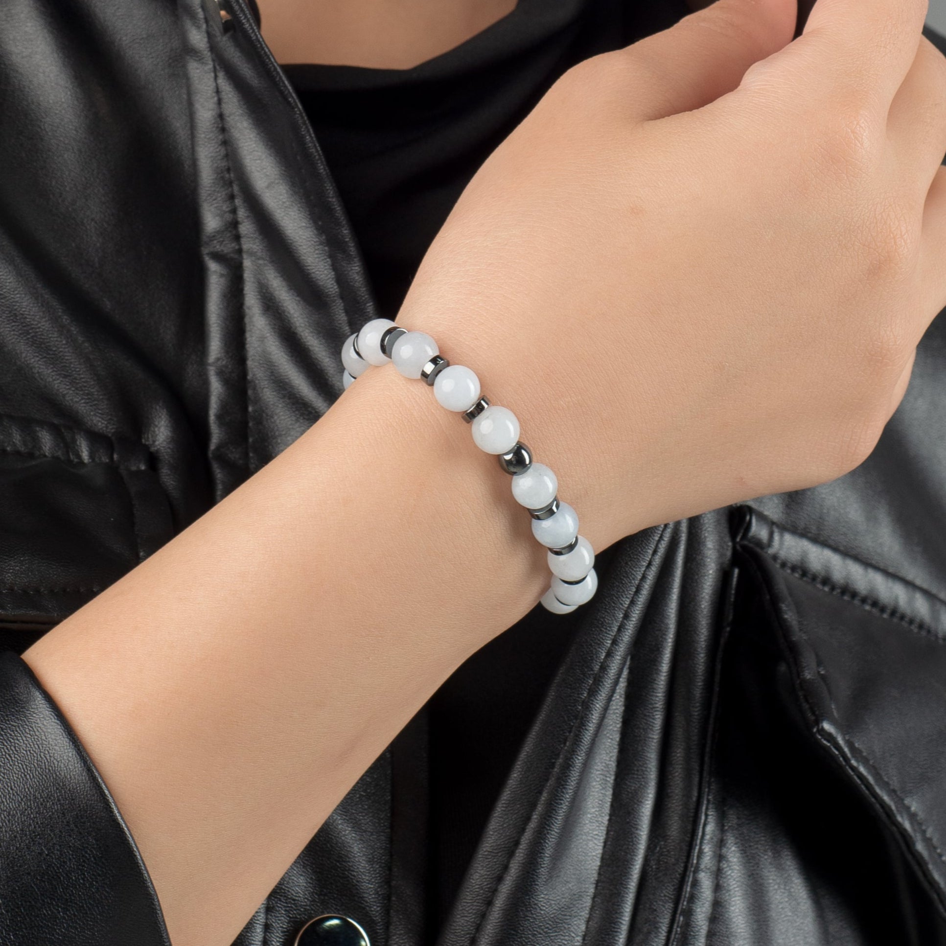 We carved it for you with pure love, designed from an Aquamarine stone, and precious hematite stones, so that it comes to you as a precious gift.
