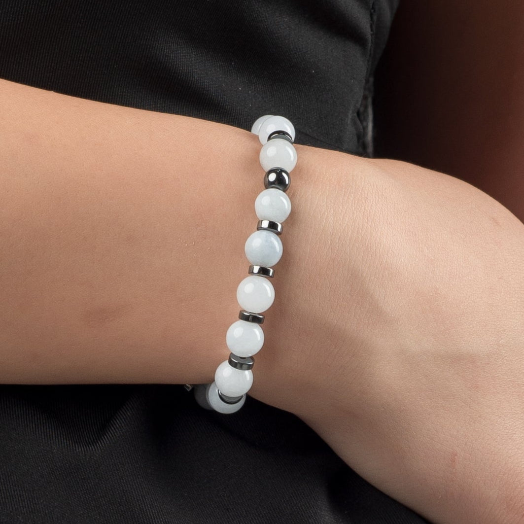 Aquamarine - Hematite Bracelet - (8 mm)