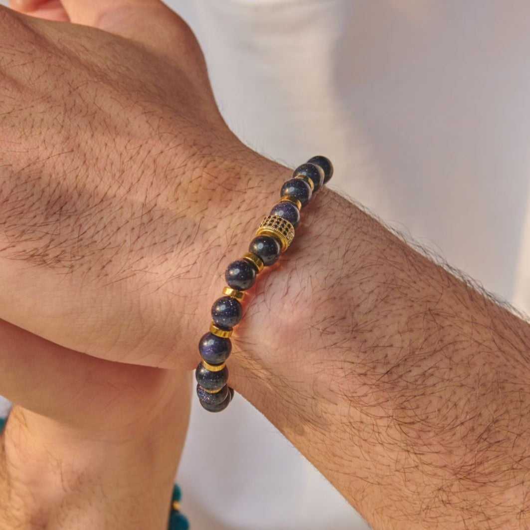 This Bracelet is distinguished by its elegant circular shape, which gives it a charming effect. We carved it for you with pure love, designed from blue gold stone inlaid with zircon stones and precious hematite stones, so that it comes to you as a precious gift.Artists have assembled these bracelets with extra strong thread that we guarantee for life.Surprise your loved ones with this special bracelet made with love.