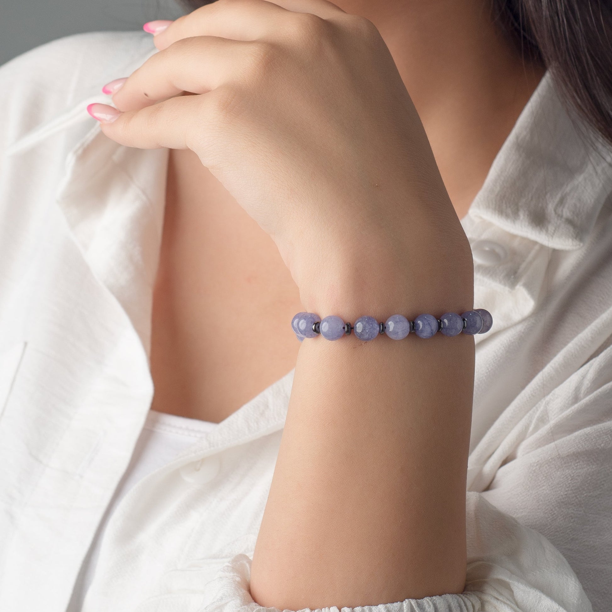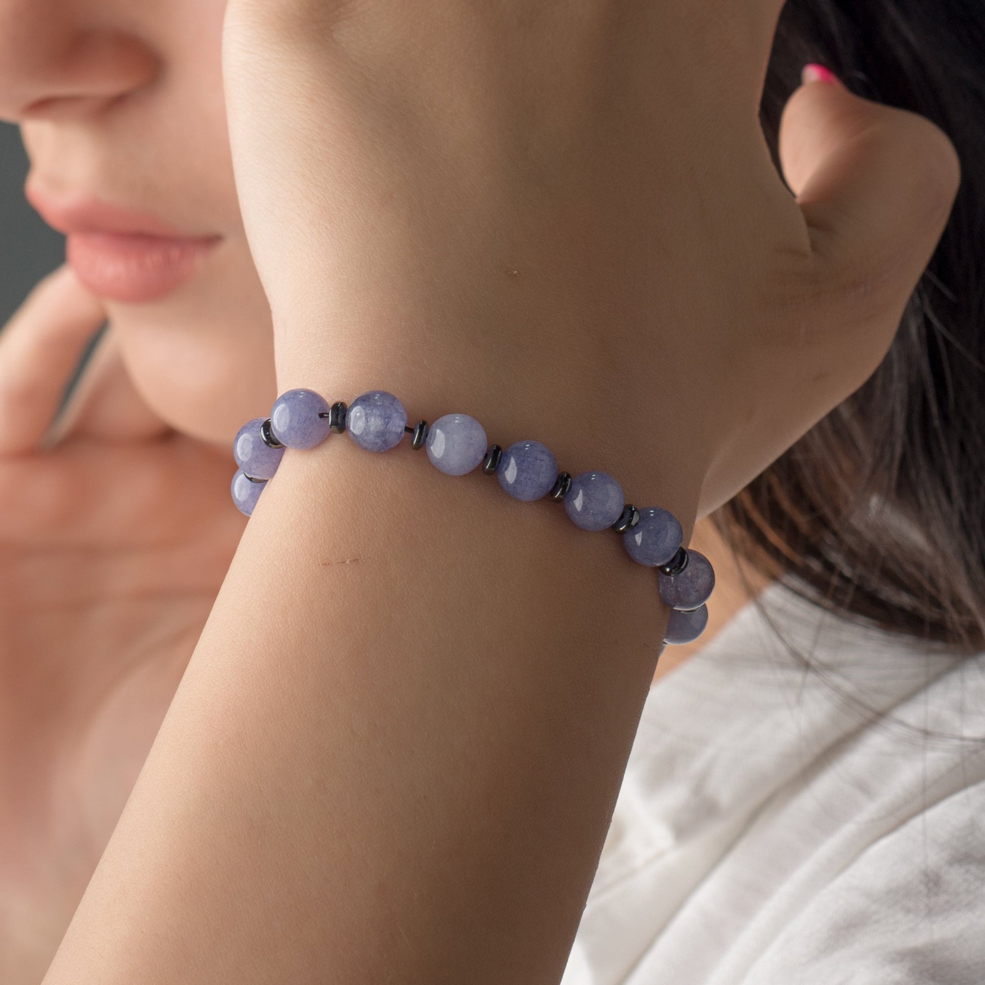 Blue Jade - Hematite Bracelet - (8 mm)