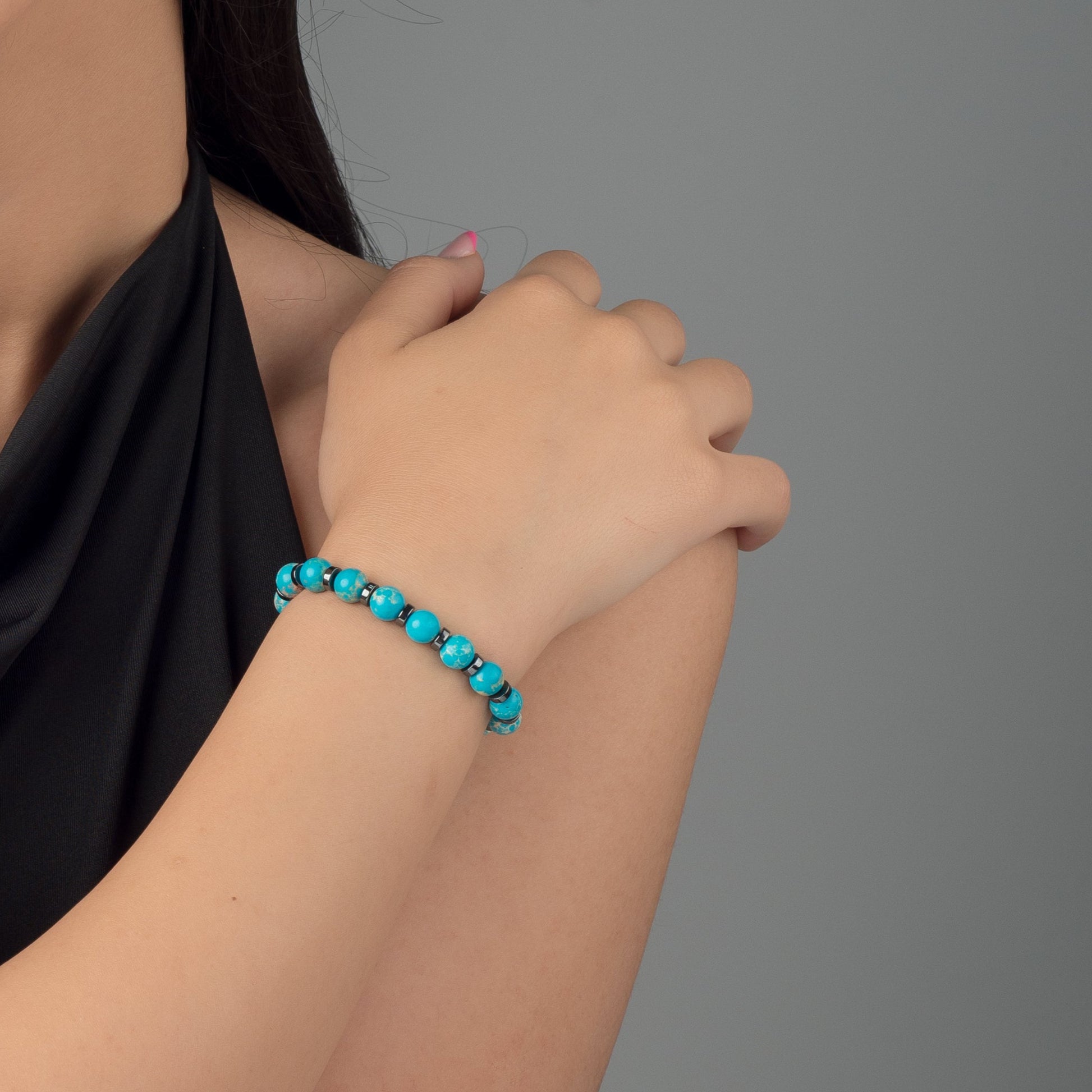 Blue Jasper - Hematite Bracelet - (8 mm)
