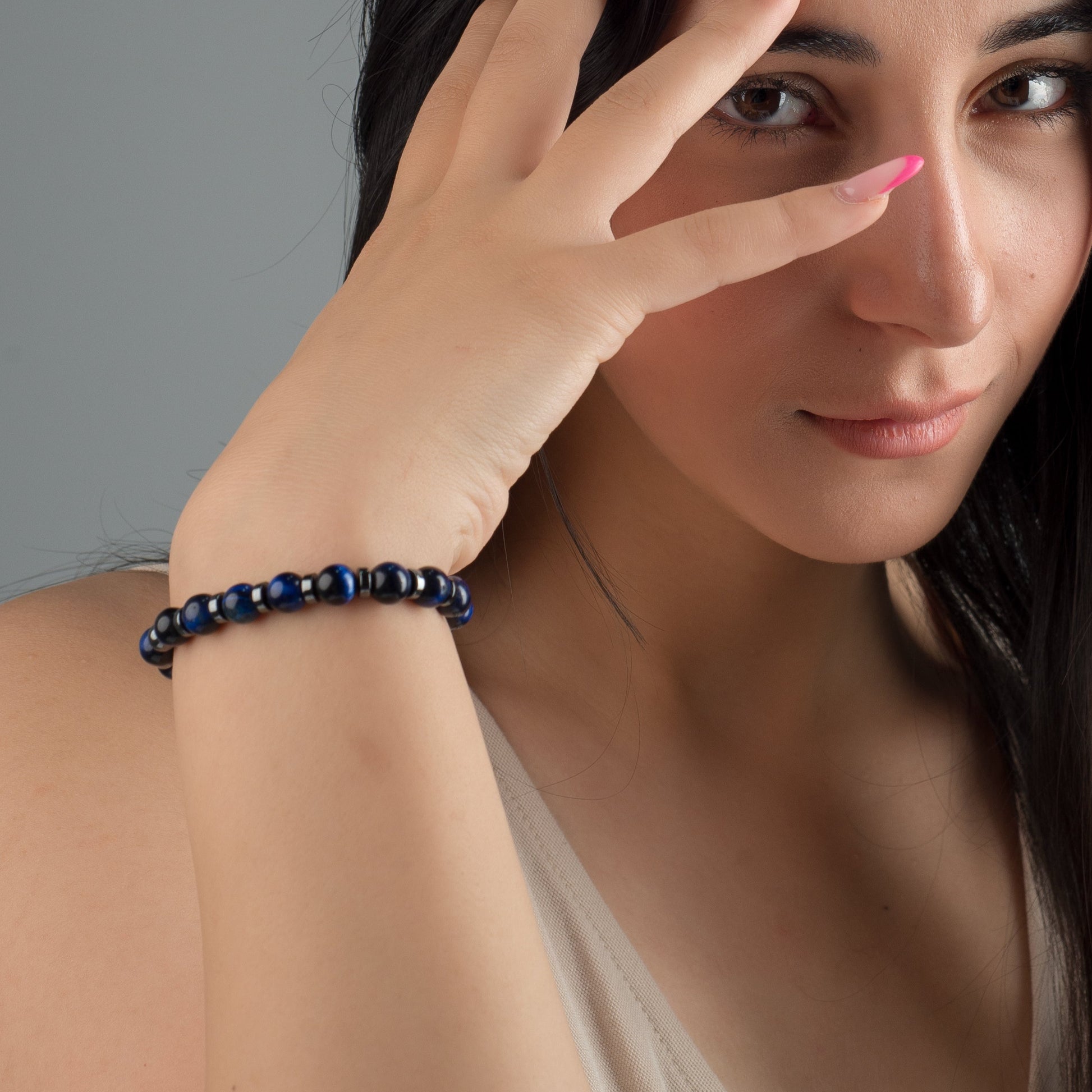 Blue Tiger Eye - Hematite Bracelet - (8 mm)