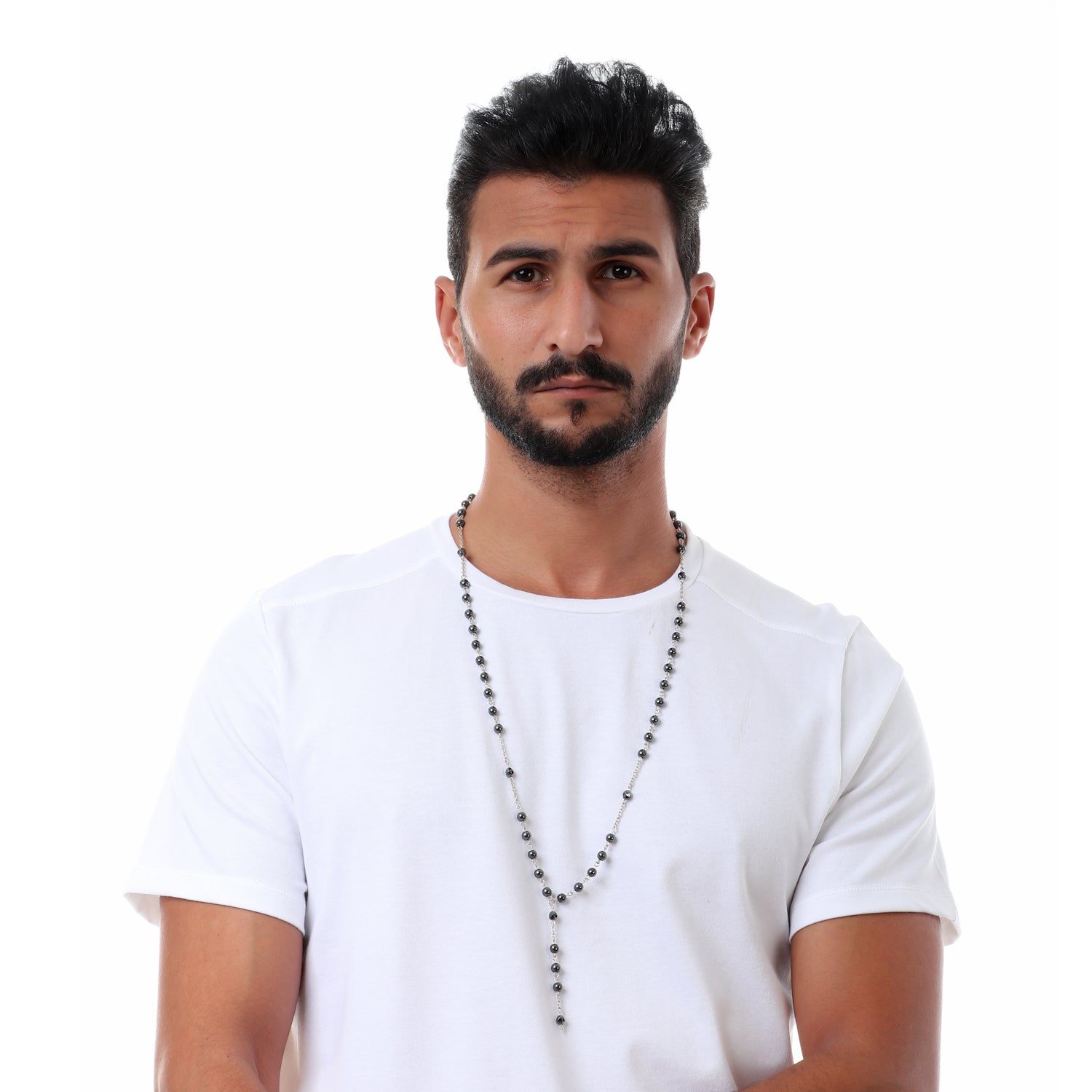 Complete your outfit with our Hematite Necklace V (6mm). Handcrafted in The Egyption by professional artisans with the best Nature has to offer and with 925 Sterling Silver.What if your Necklace became a piece of art that adorns Your neck ?We offer you this wonderful Necklace that you can wear all the time, accompany you in your day, inspire you and remind you of what is important, and add an aesthetic touch to your daily look.This piece of art is carved from natural Hematite stone, carefully arranged, and assembled with a very strong thread that we guarantee for life.Our artists designed this Necklace to be easily worn.