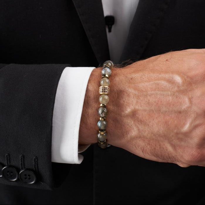 This collection is distinguished by its elegant circular shape, which gives it a charming effect. We carved it for you with pure love, designed from a Labradorite stone, inlaid with zircon stones and precious hematite stones, so that it comes to you as a precious gift.