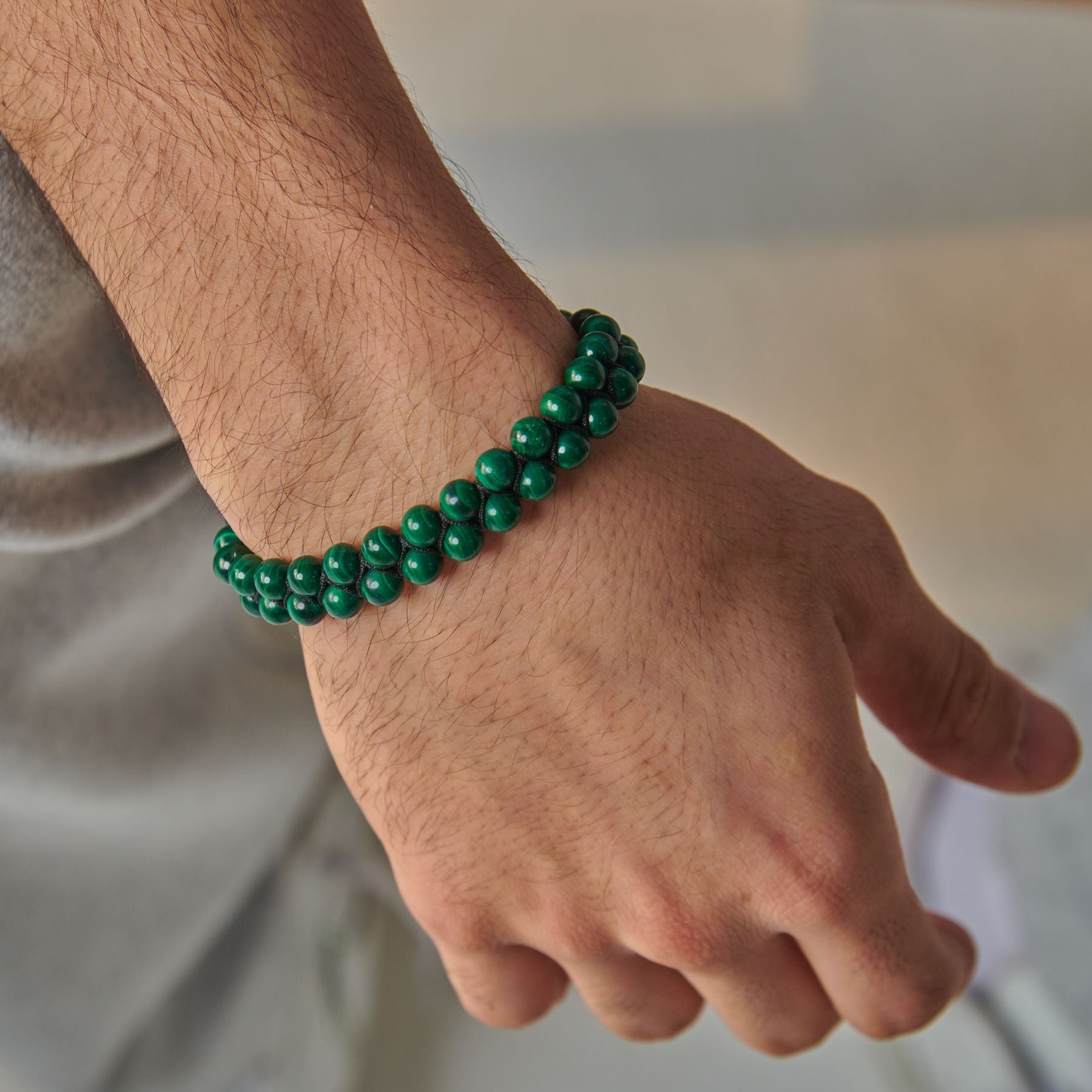 We were inspired by the Arabic heritage to design this bracelet, which is a mixture of malachite stone beads in a beautiful arrangement.