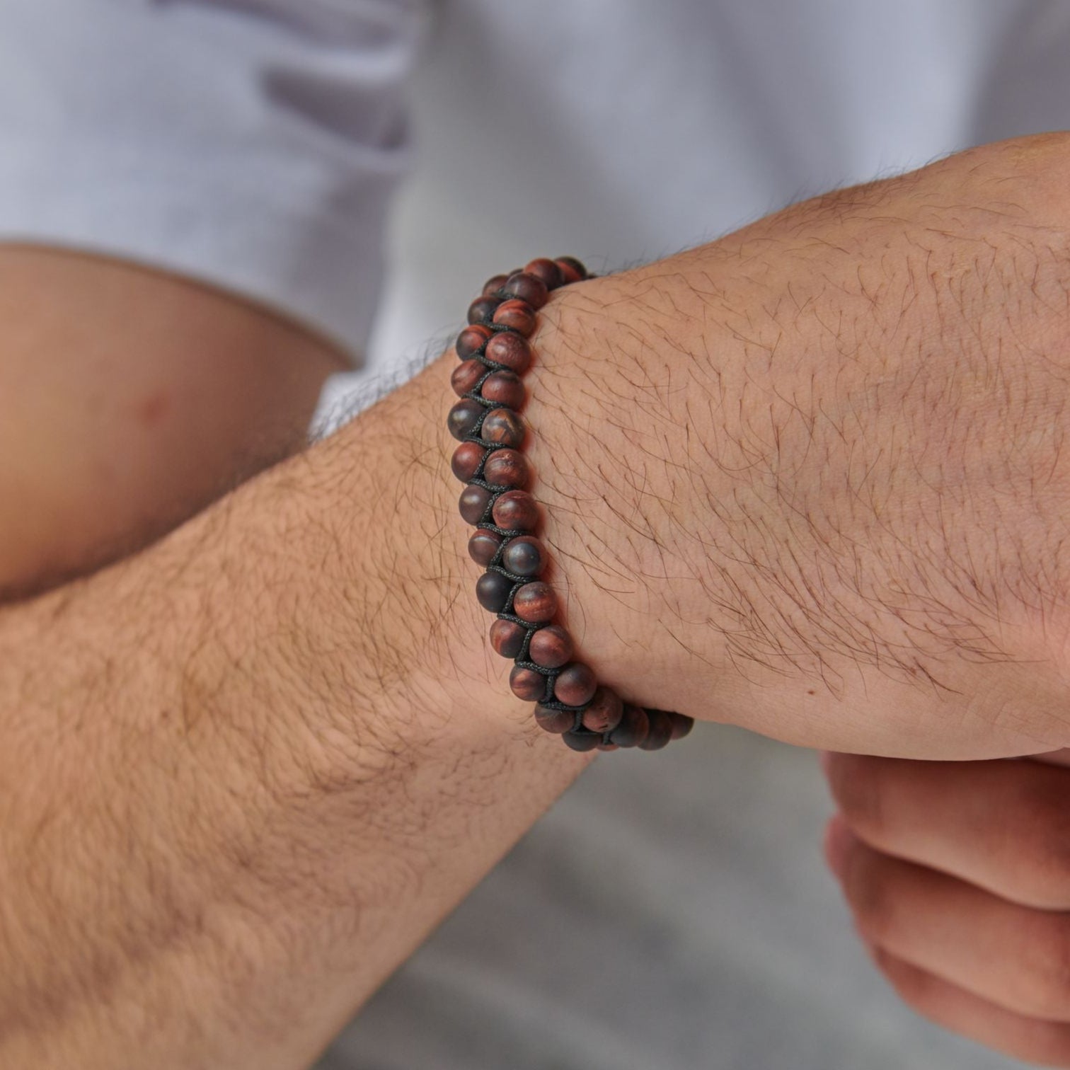 We were inspired by the Arabic heritage to design this bracelet, which is a mixture of matte tiger eye stone beads in a beautiful pattern.