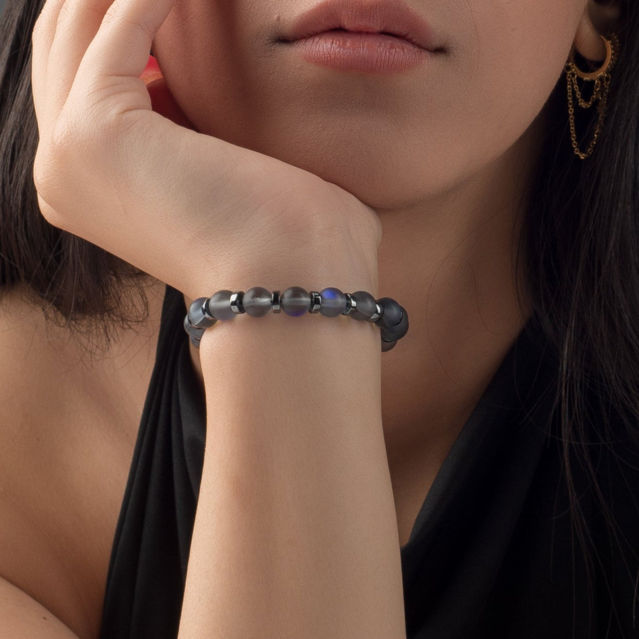We carved it for you with pure love, designed from an Moon stone, and precious hematite stones, so that it comes to you as a precious gift.