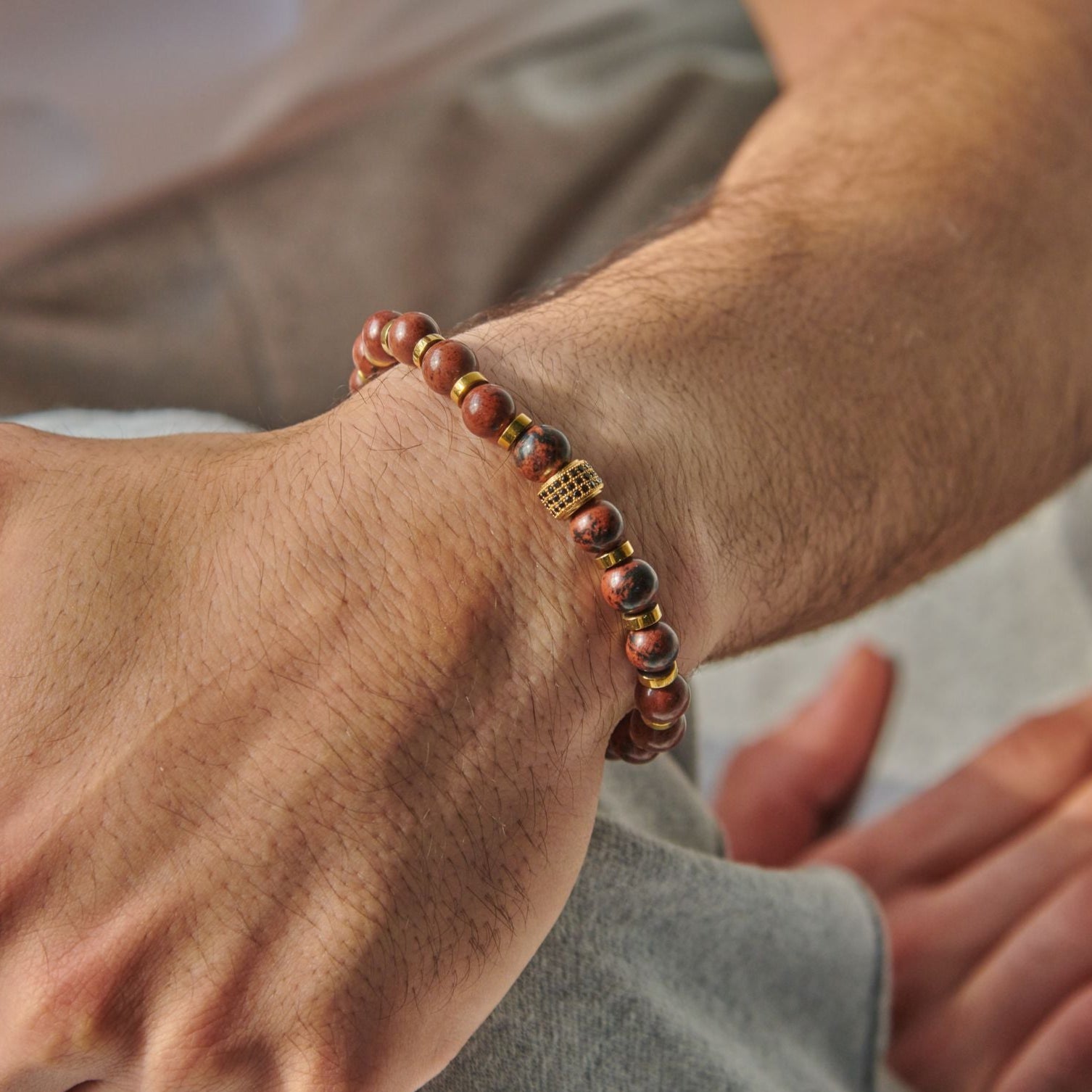 This Bracelet is distinguished by its elegant circular shape, which gives it a charming effect. We carved it for you with pure love, designed from red jasper stone inlaid with zircon stones and precious hematite stones, so that it comes to you as a precious gift.Artists have assembled these bracelets with extra strong thread that we guarantee for life.Surprise your loved ones with this special bracelet made with love.