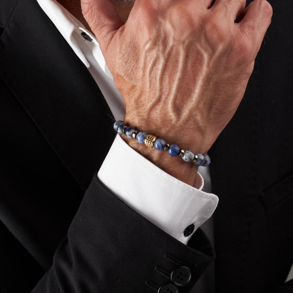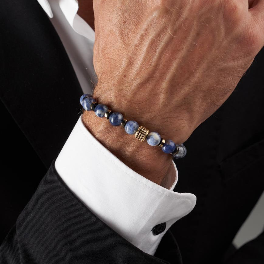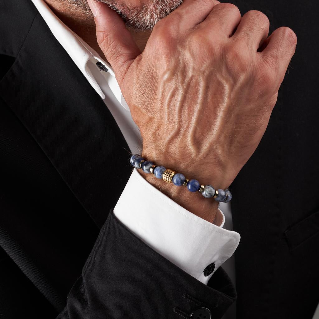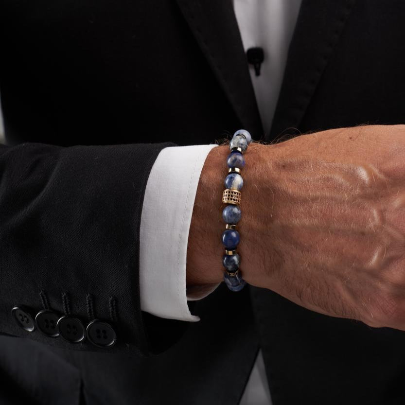 This collection is distinguished by its elegant circular shape, which gives it a charming effect. We carved it for you with pure love, designed from a Sodalite stone, inlaid with zircon stones and precious hematite stones, so that it comes to you as a precious gift.