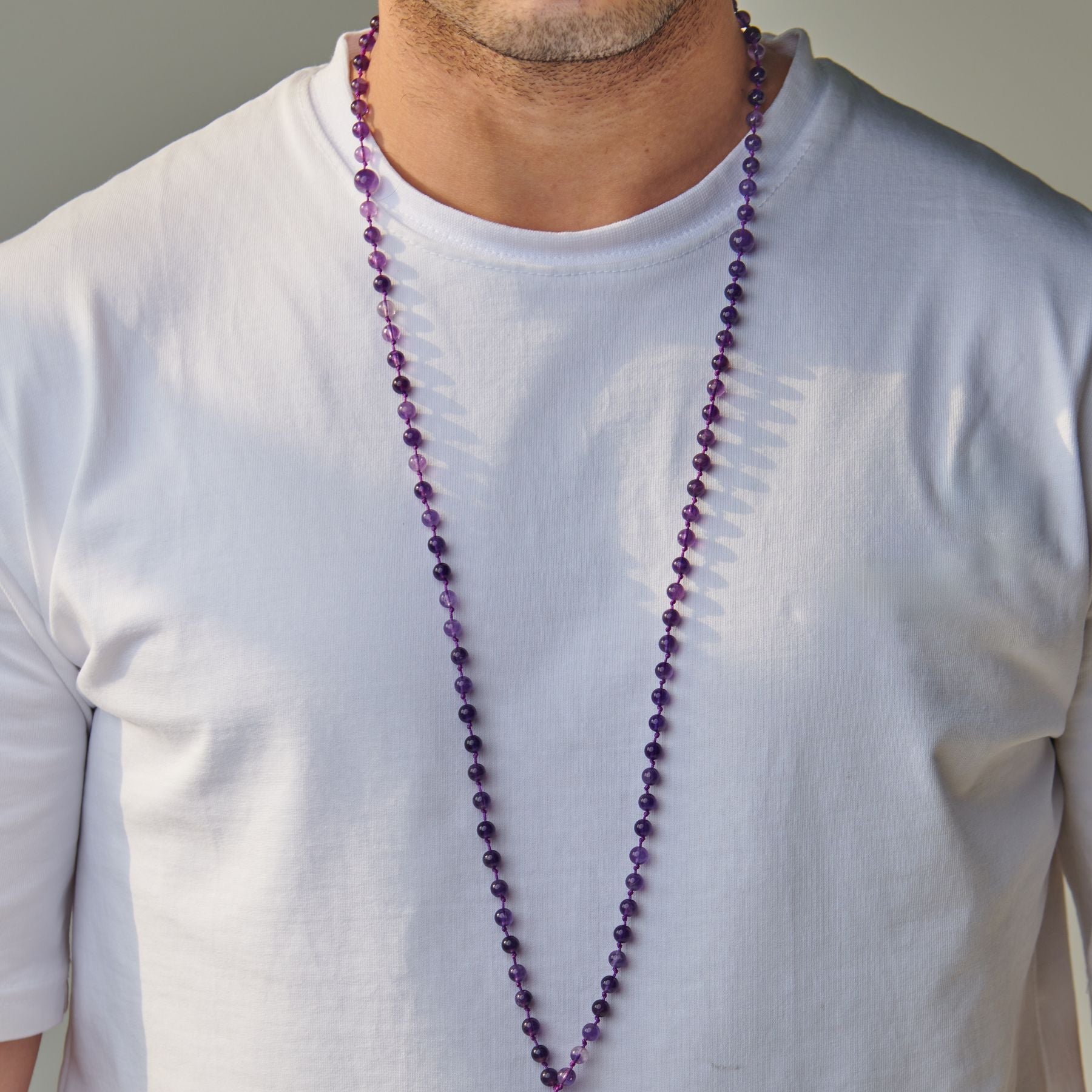 We offer you this wonderful rosary bracelet that you can wear all the time, accompany you in your day, inspire you and remind you of what is important, and add a beautiful touch to your daily look.This piece of art is carved from natural amethyst stone, carefully arranged, and assembled with a very strong thread that we guarantee for life.Our artists designed this rosary bracelet to be easily worn, just pull the small hand-braided lighthouse to untie (loose) the rosary, then wrap it three times around your wrist, and tighten it to become wrapped comfortably and appropriately.