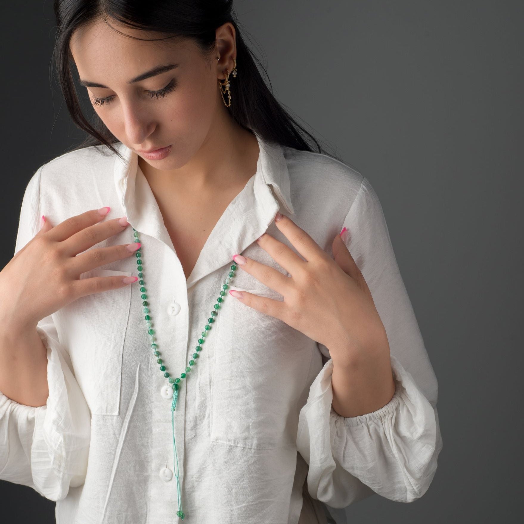 We offer you this wonderful rosary bracelet that you can wear all the time, accompany you in your day, inspire you and remind you of what is important, and add a beautiful touch to your daily look.This piece of art is carved from natural green agate stone, carefully arranged, and assembled with a very strong thread that we guarantee for life.Our artists designed this rosary bracelet to be easily worn, just pull the small hand-braided lighthouse to untie (loose) the rosary, then wrap it three times around your wrist, and tighten it to become wrapped comfortably and appropriately.