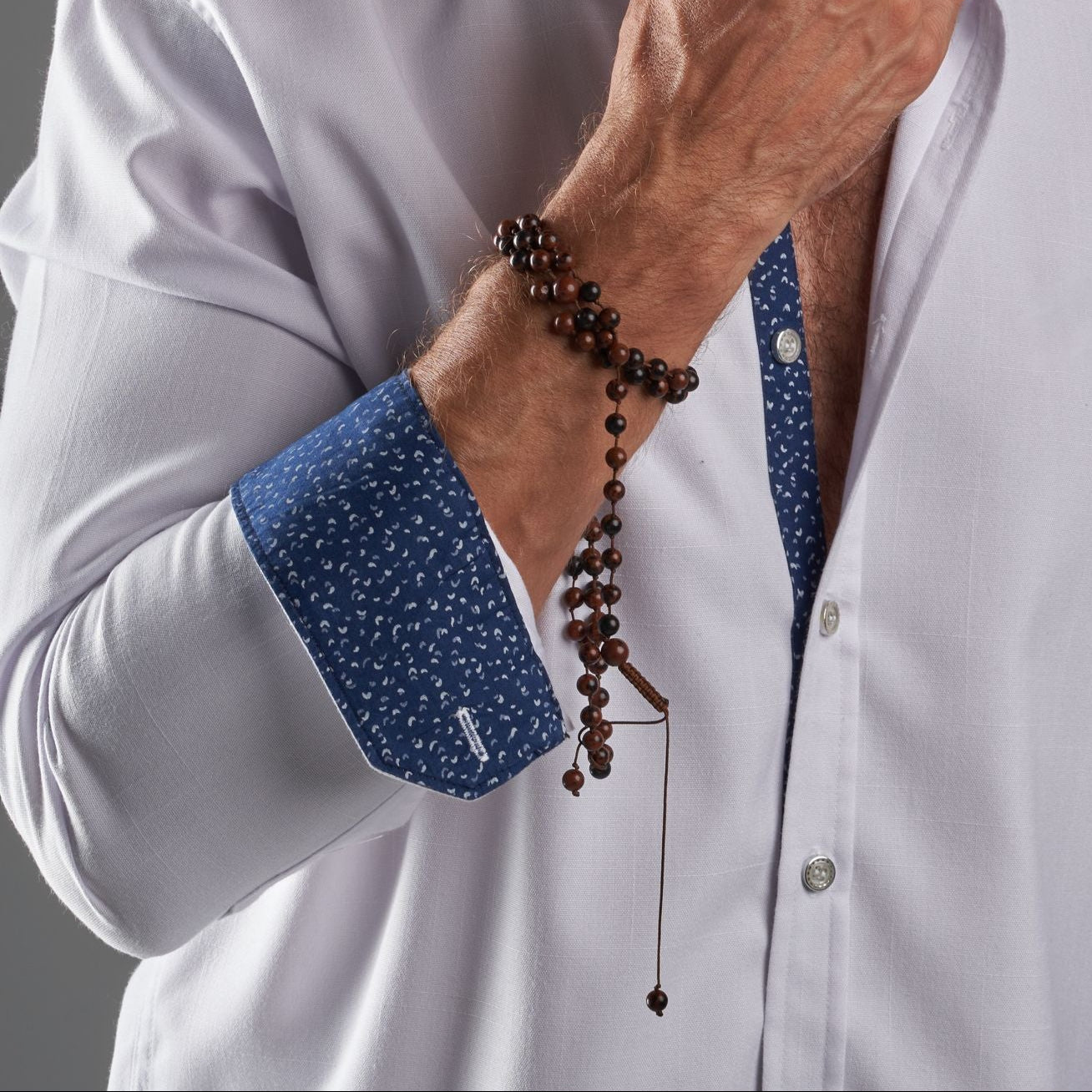 We offer you this wonderful rosary bracelet that you can wear all the time, accompany you in your day, inspire you and remind you of what is important, and add a beautiful touch to your daily look.This piece of art is carved from natural mahogany obsidian stone, carefully arranged, and assembled with a very strong thread that we guarantee for life.Our artists designed this rosary bracelet to be easily worn, just pull the small hand-braided lighthouse to untie (loose) the rosary, then wrap it three times around your wrist, and tighten it to become wrapped comfortably and appropriately.