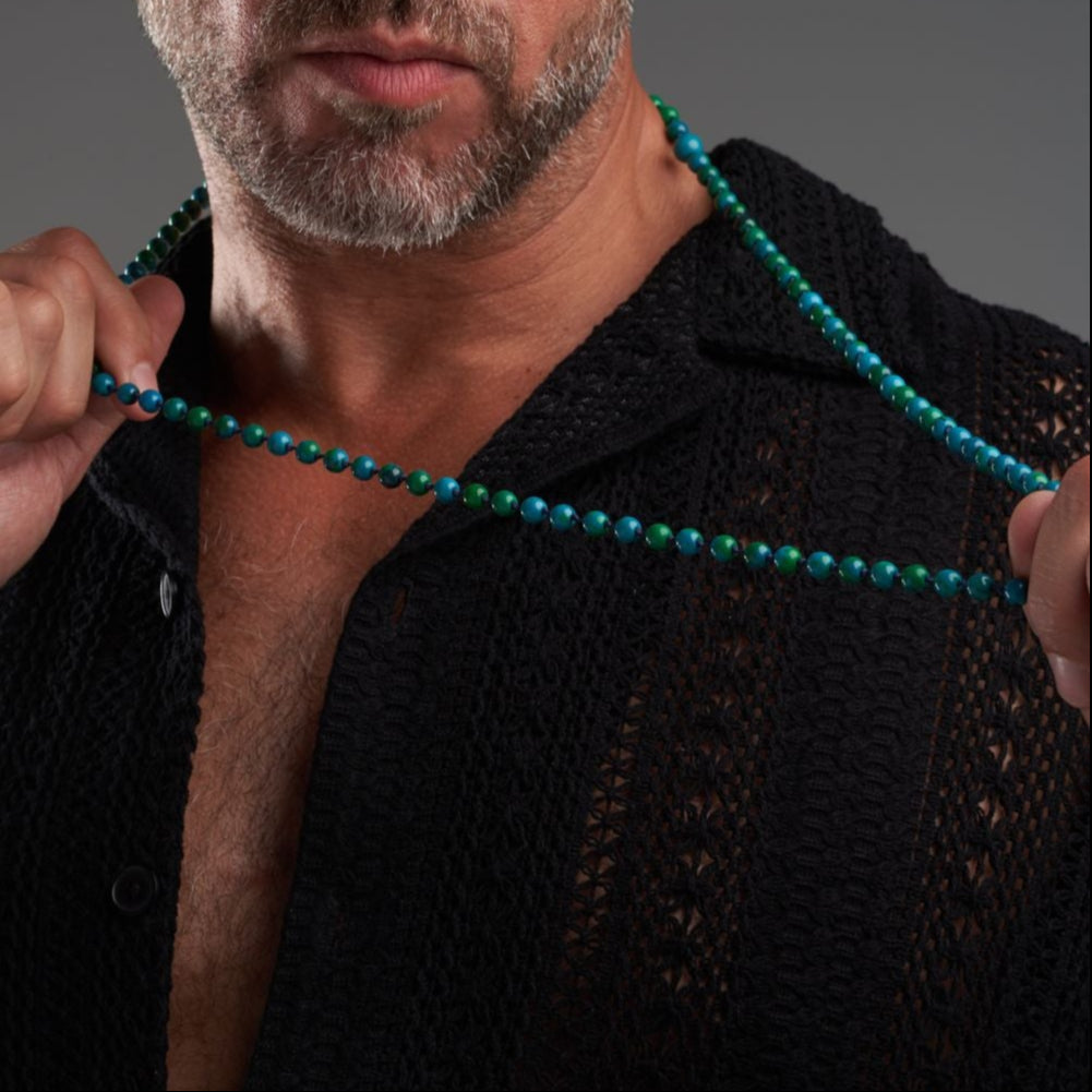 Mocktail jasper is a colorful silicate gemstone characterized by a blend of attractive blue and green hues. Formed in the Cretaceous period, this stone is used in jewelry and decorative works and is said to aid decision-making in times of stress and promote confidence and versatility, according to some spiritual beliefs.
