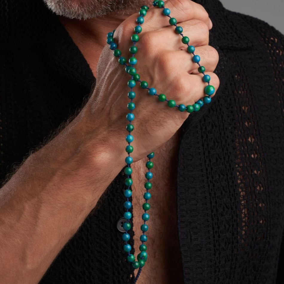 We offer you this wonderful rosary bracelet that you can wear all the time, accompany you in your day, inspire you and remind you of what is important, and add a beautiful touch to your daily look.This piece of art is carved from natural Mokaite stone, carefully arranged, and assembled with a very strong thread that we guarantee for life.Our artists designed this rosary bracelet to be easily worn, just pull the small hand-braided lighthouse to untie (loose) the rosary, then wrap it three times around your wrist, and tighten it to become wrapped comfortably and conveniently.