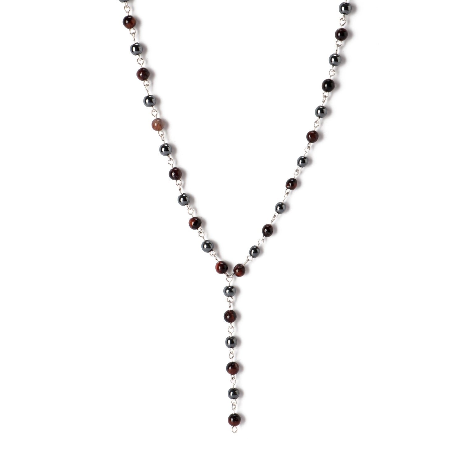 Complete your outfit with our Tiger Eye stone and Hematite stone Necklace V (6mm). Handcrafted in The Egyption by professional artisans with the best Nature has to offer and with 925 Sterling Silver.What if your Necklace became a piece of art that adorns Your neck ?We offer you this wonderful Necklace that you can wear all the time, accompany you in your day, inspire you and remind you of what is important, and add an aesthetic touch to your daily look.This piece of art is carved from natural Tiger Eye stone and Hematite stone , carefully arranged, and assembled with a very strong thread that we guarantee for life.Our artists designed this Necklace to be easily worn.