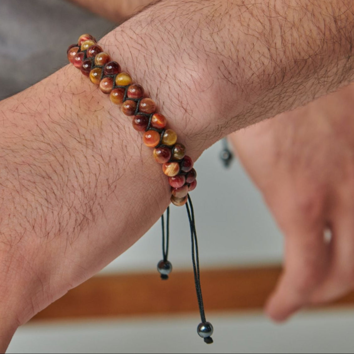 We were inspired by the Arabic heritage to design this bracelet, which is a mixture of sparkling tiger's eye stone beads in a beautiful arrangement.