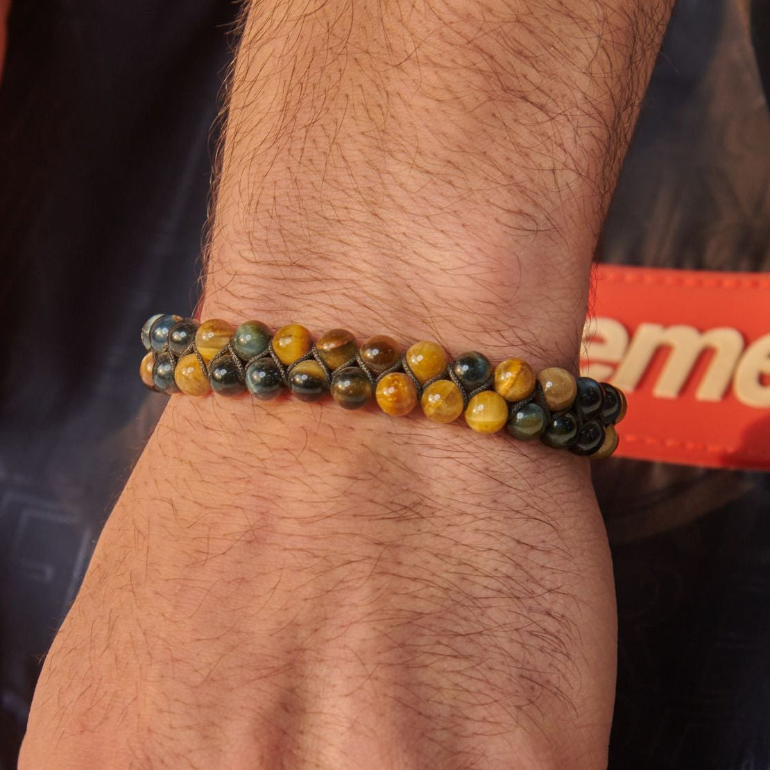 We were inspired by the Arabic heritage to design this bracelet, which is a mixture of sparkling tiger's eye stone beads in a beautiful arrangement.