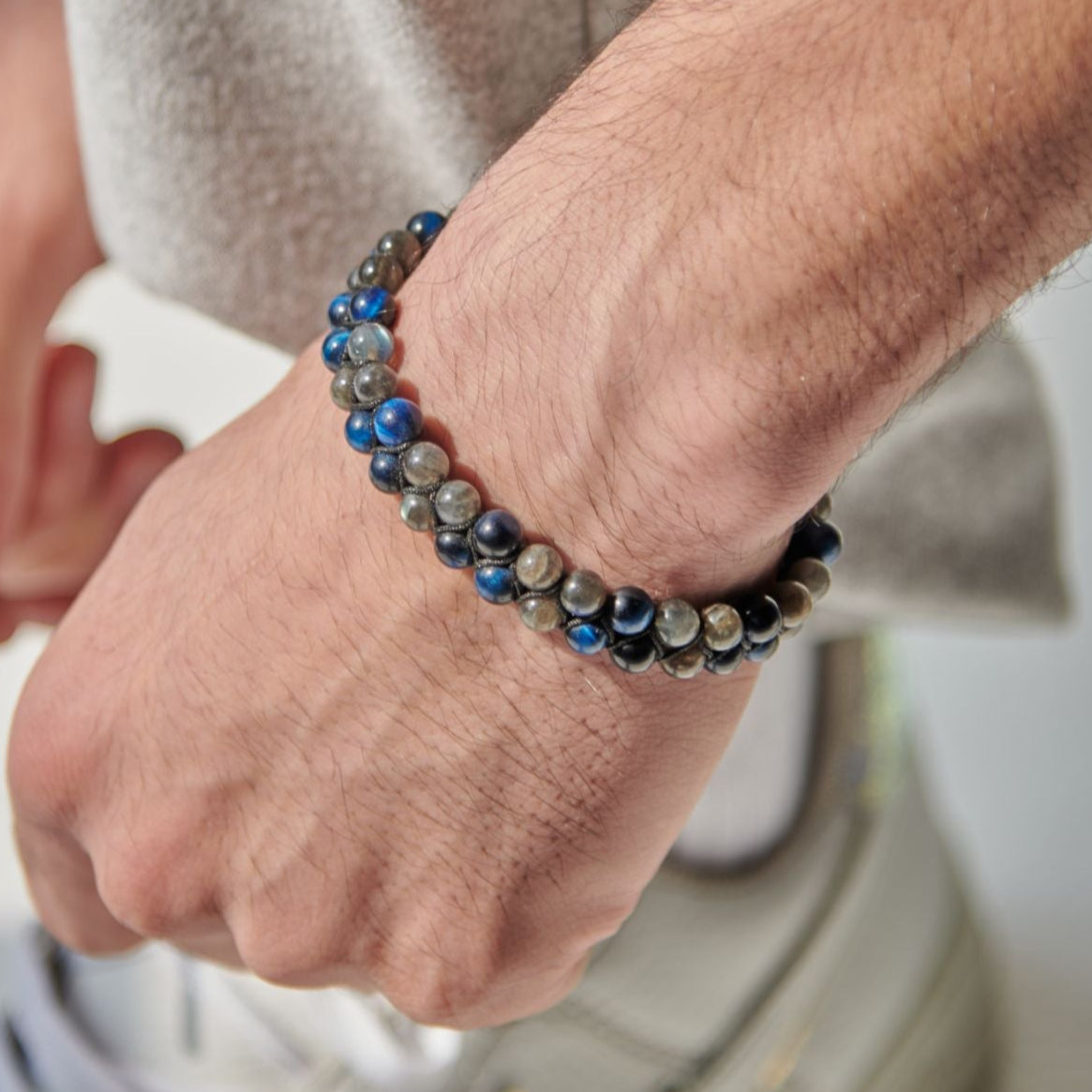From the Arabic heritage, we were inspired to design this bracelet, which is a combination of labradorite stone beads with sparkling tiger eye stone beads in a beautiful arrangement.