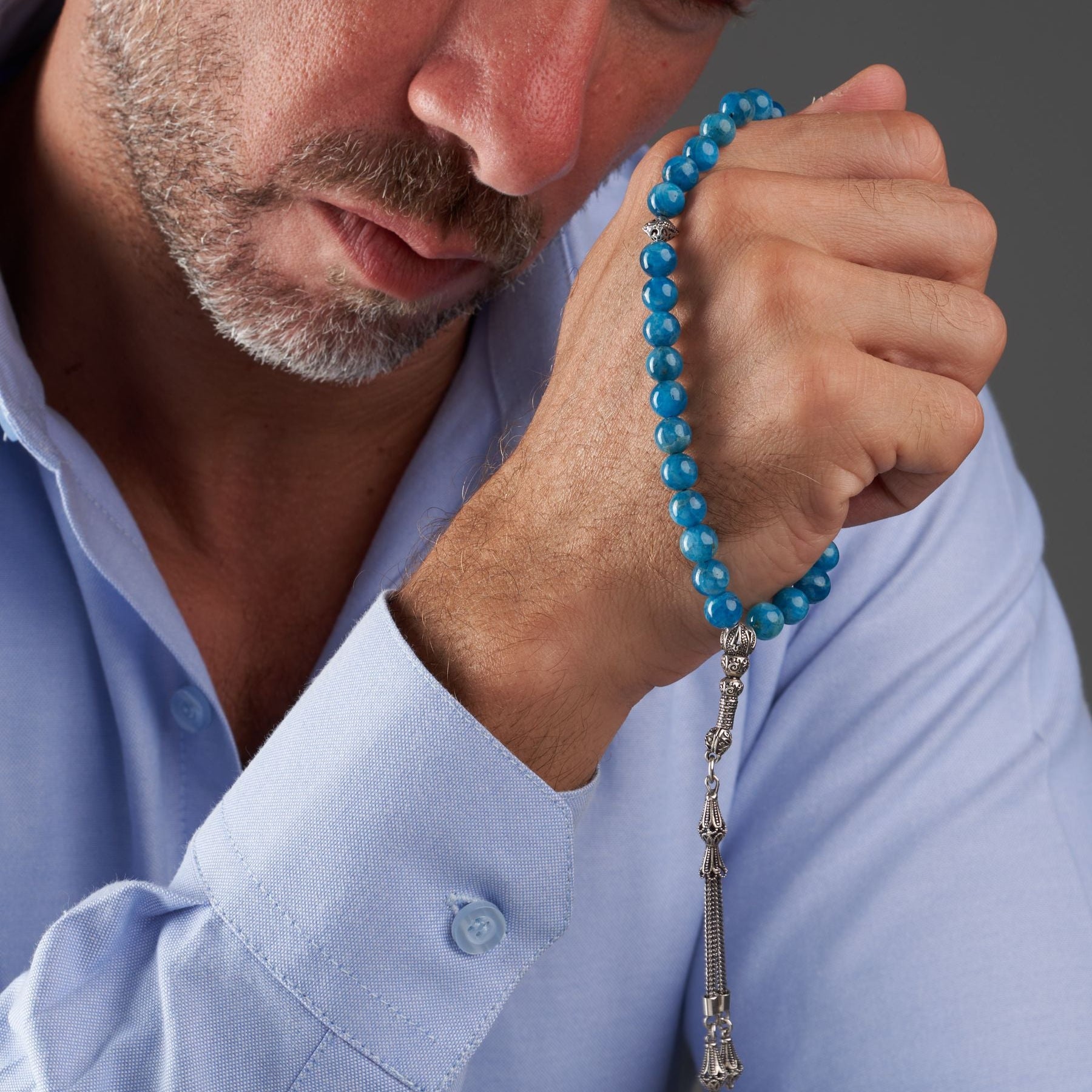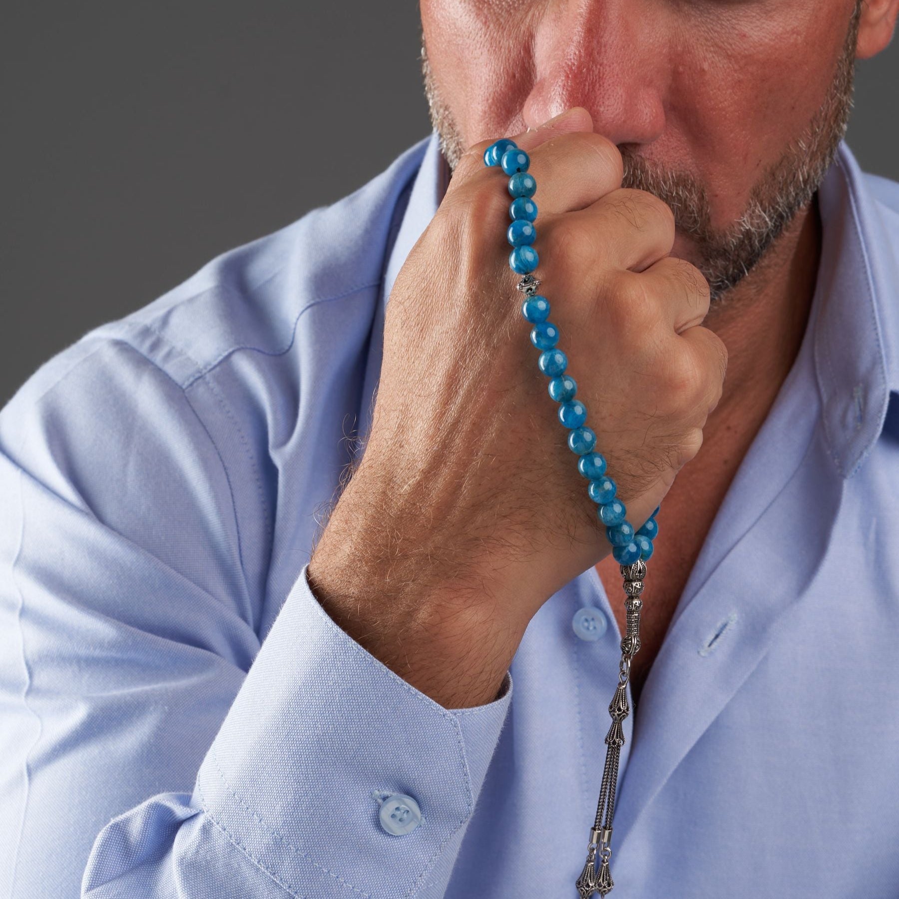 Traveler's Rosary: Apatite and Silver - 33 beads, (8 mm)