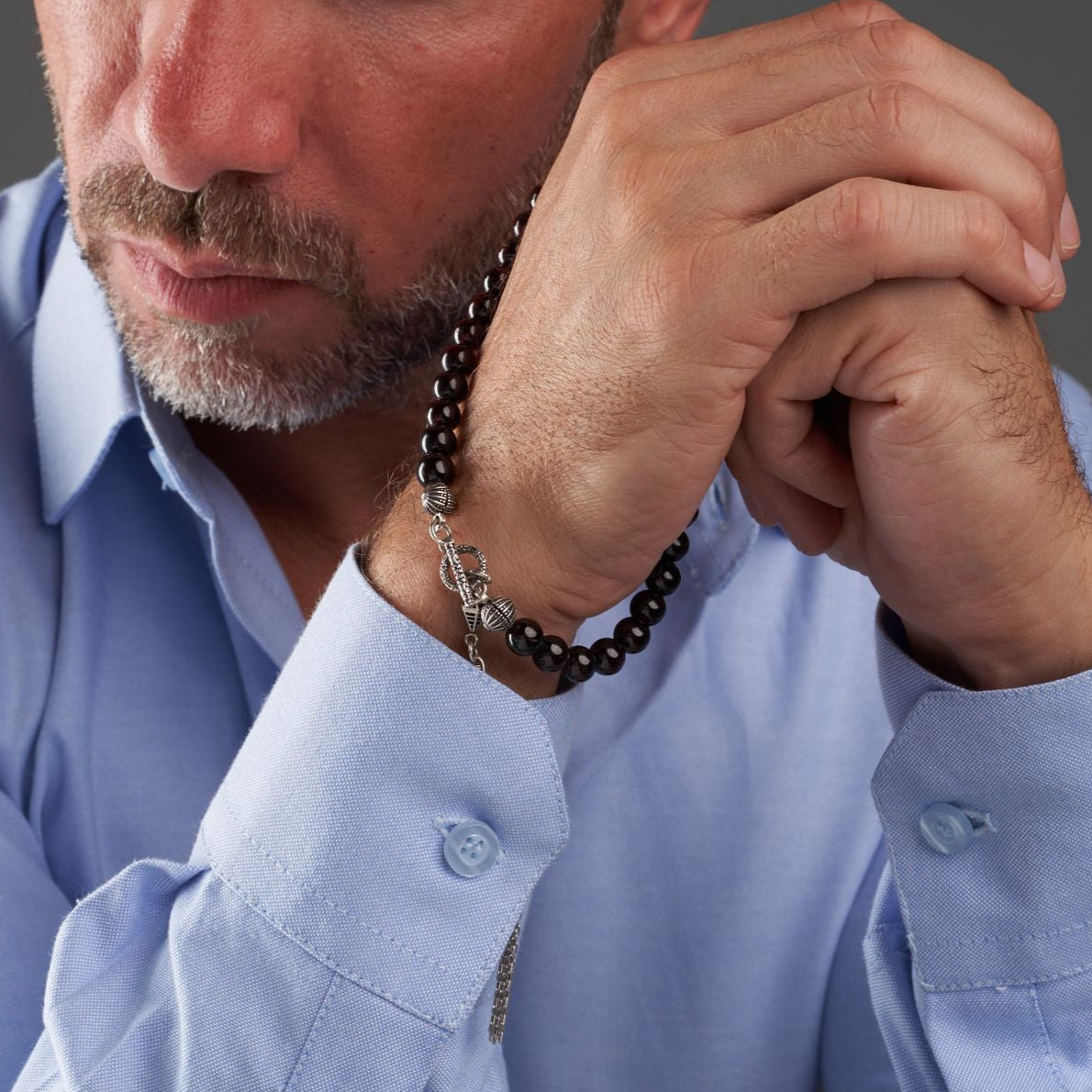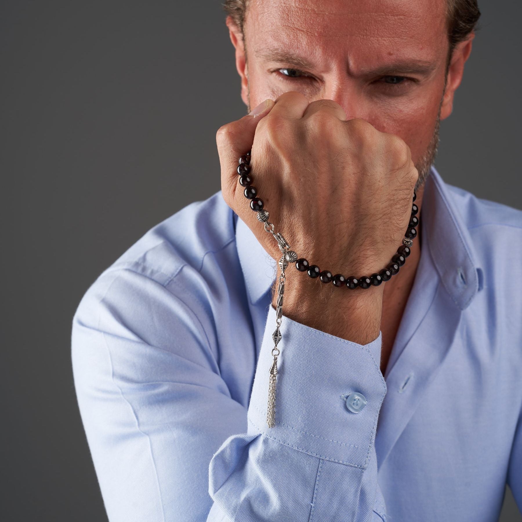 Traveler's Rosary Bracelet: Garnet & Silver - 33 Beads (8mm)