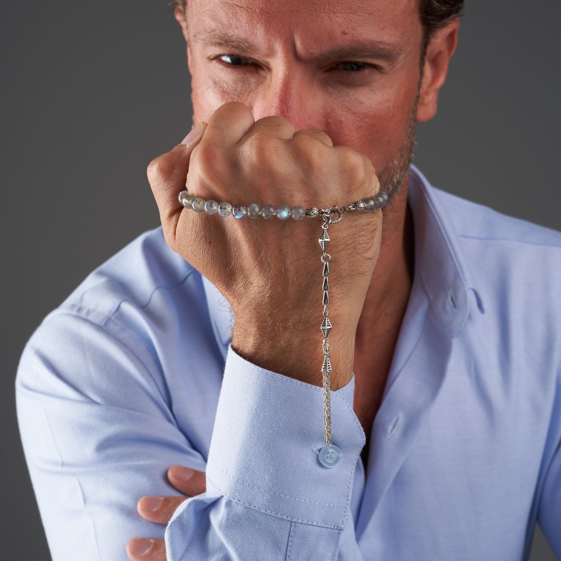 Traveler's Rosary Bracelet: Moon & Silver - 33 Beads, (7mm)